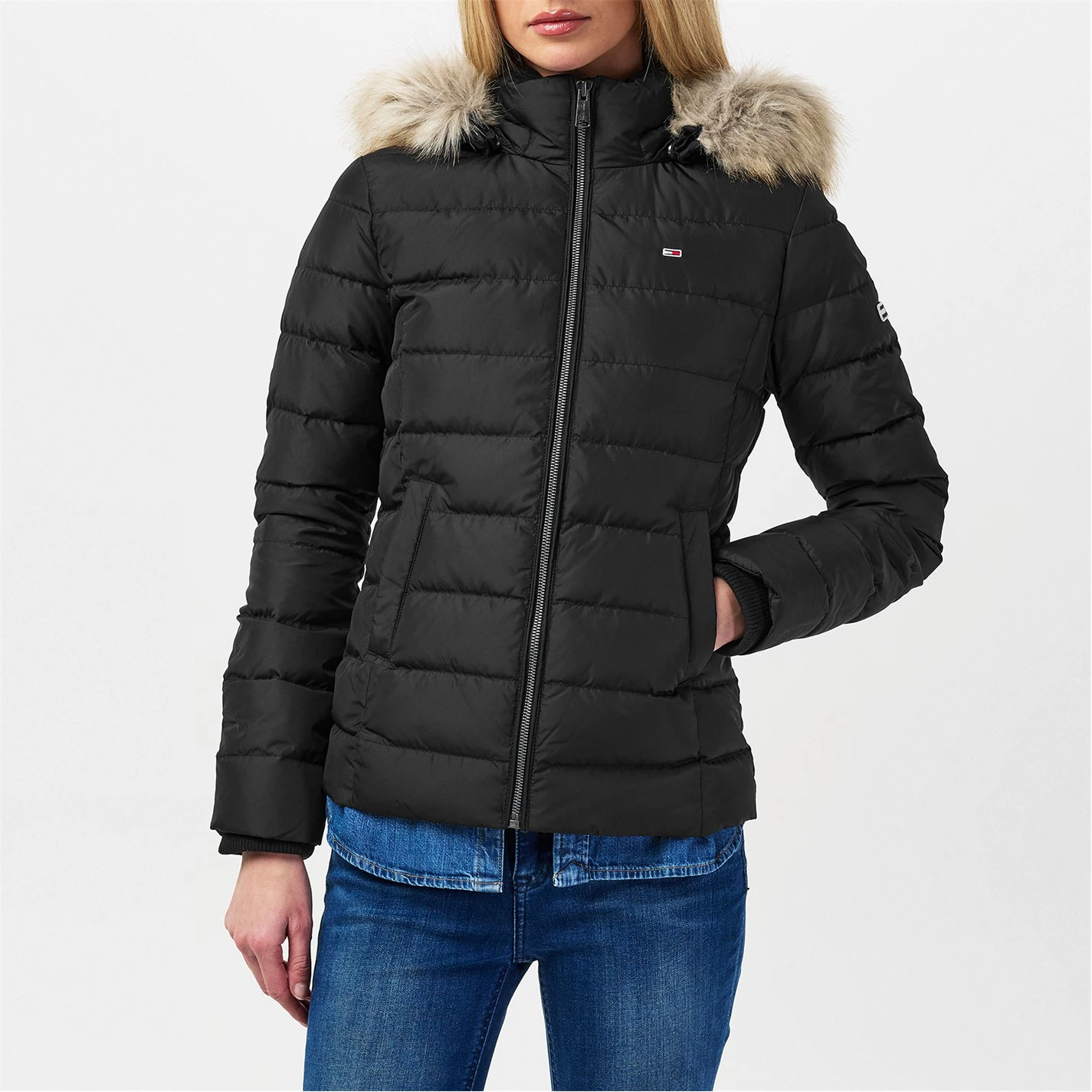 Women's Essential Quilted Wind Resistant Faux Fur Hood RDS Down Short Puffer Jacket